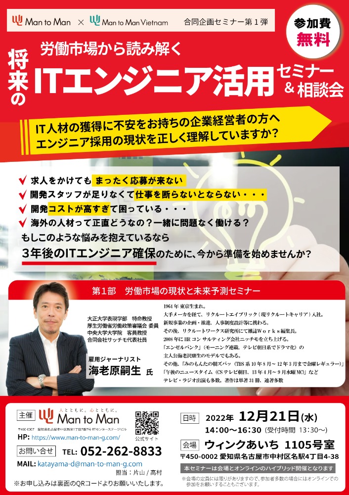 Man to Man Vietnamと共同で、年々深刻さを増している【IT人材の獲得】について考えるセミナーを開催いたします。